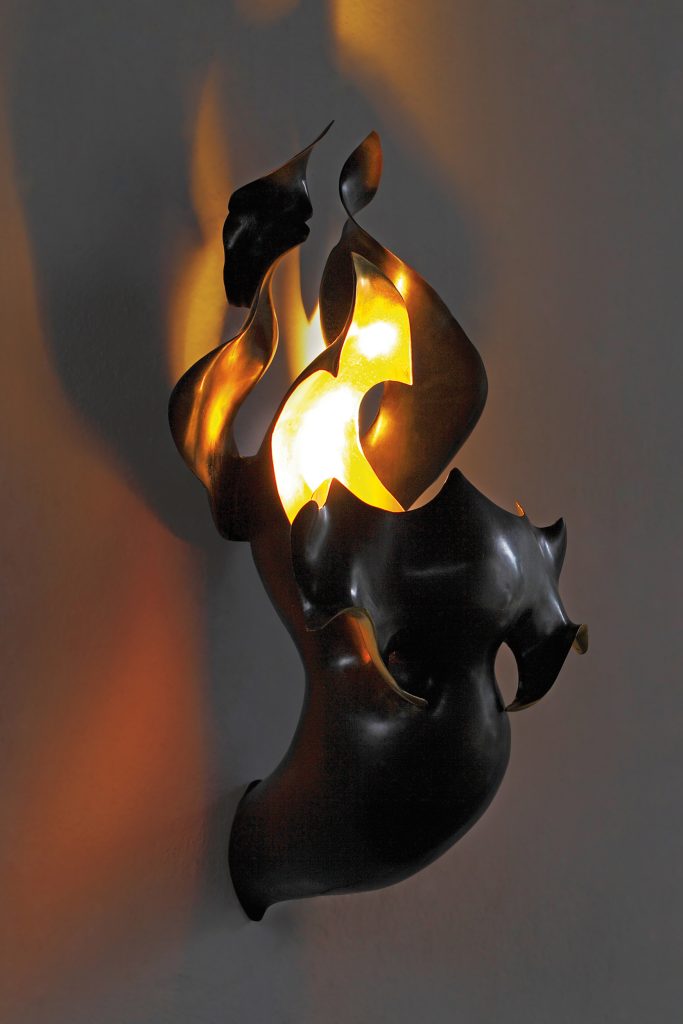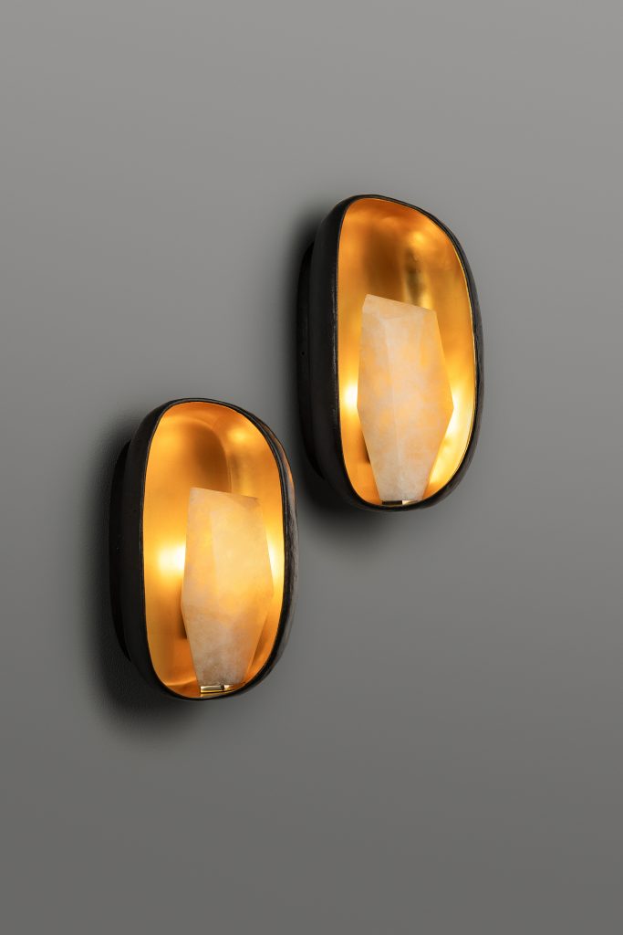 Coming upon darkening winter months and frostier evenings, the refuge of a cozy interior becomes ever more delicious when cast in the rich tones of gold leaf, met by the warmth of cast bronze, rich natural lacquer or tactile shagreen. The pleasures of this material can be tickled in the subtlest of encounters – a glint of warmth held in a dark lacquer inlay, a hue licking the curves of the Labellum sconce and Hourglass sconce.